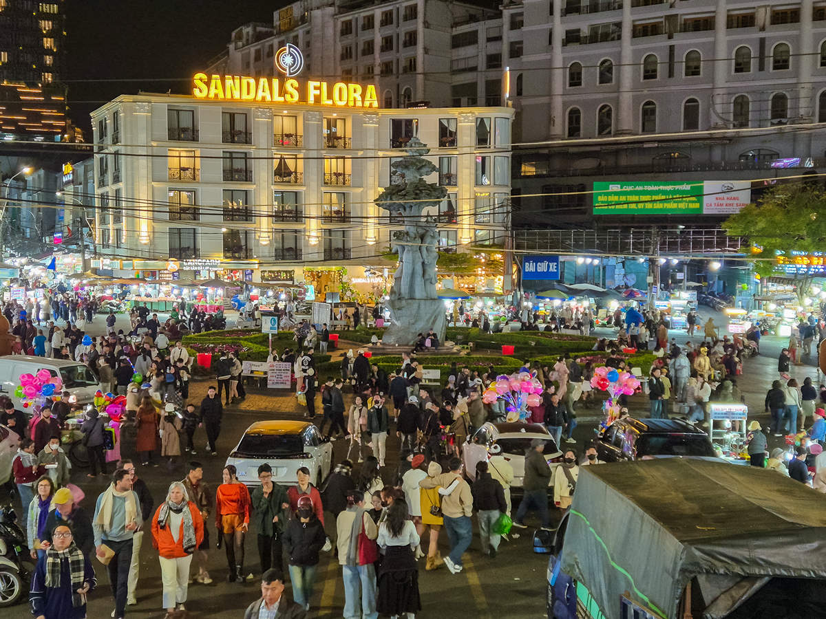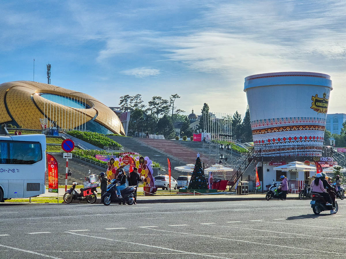 Der Lam Vien Square ist einer der bekanntesten Plätze in Da Lat – besonders durch die zwei blumenförmige Glasgebäude. Das eine erinnert an eine Sonnenblume und beherbergt das Operahaus der Stadt. Das zweite erinnert an eine Artischocke und gibt einigen Cafés ein Zuhause.