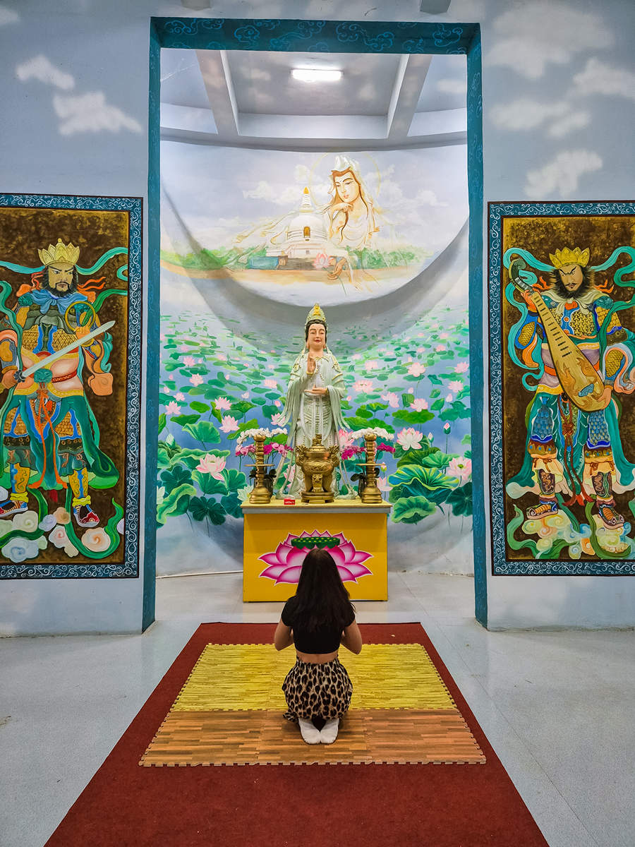 Die riesige Skulptur ist selbst ein Gebäude mit mehreren Stockwerken, das du betreten kannst. An den verschiedenen Ebenen findest du liebevoll gestaltete Schreine. Im Tempel tönt angenehme Musik, die dich zum Meditieren einlädt.