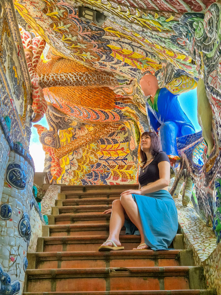 Der Linh Phuoc Tempel ist eine der bekanntesten Sehenswürdigkeiten in Da Lat und definitiv einer der einzigartigsten Tempel Vietnams. Er ist auch als „Keramik-Tempel“ oder „Bottle Temple“ bekannt, da die Fassaden und sogar die Innenräume mit Millionen bunter Keramik- und Glasstücke dekoriert sind.