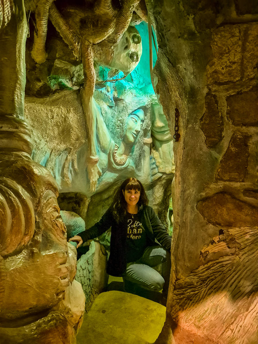 Das Gebäude wurde von Naturformen, Tieren, dem Meer und Baumstrukturen inspiriert. Statt gerader Linien findest du hier verwinkelte Treppen, geschwungene Brücken in der Höhe, Themenräume, und labyrinthartige Gänge. Da das Crazy House eigentlich ein Hotel ist, sind die Zimmer auch einzigartig eingerichtet. Selbst wenn du hier nicht übernachtest, lohnt es sich, eines dieser Räume zu bewundern.