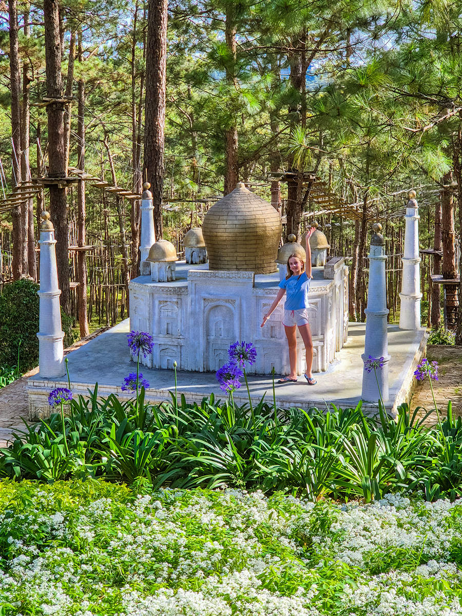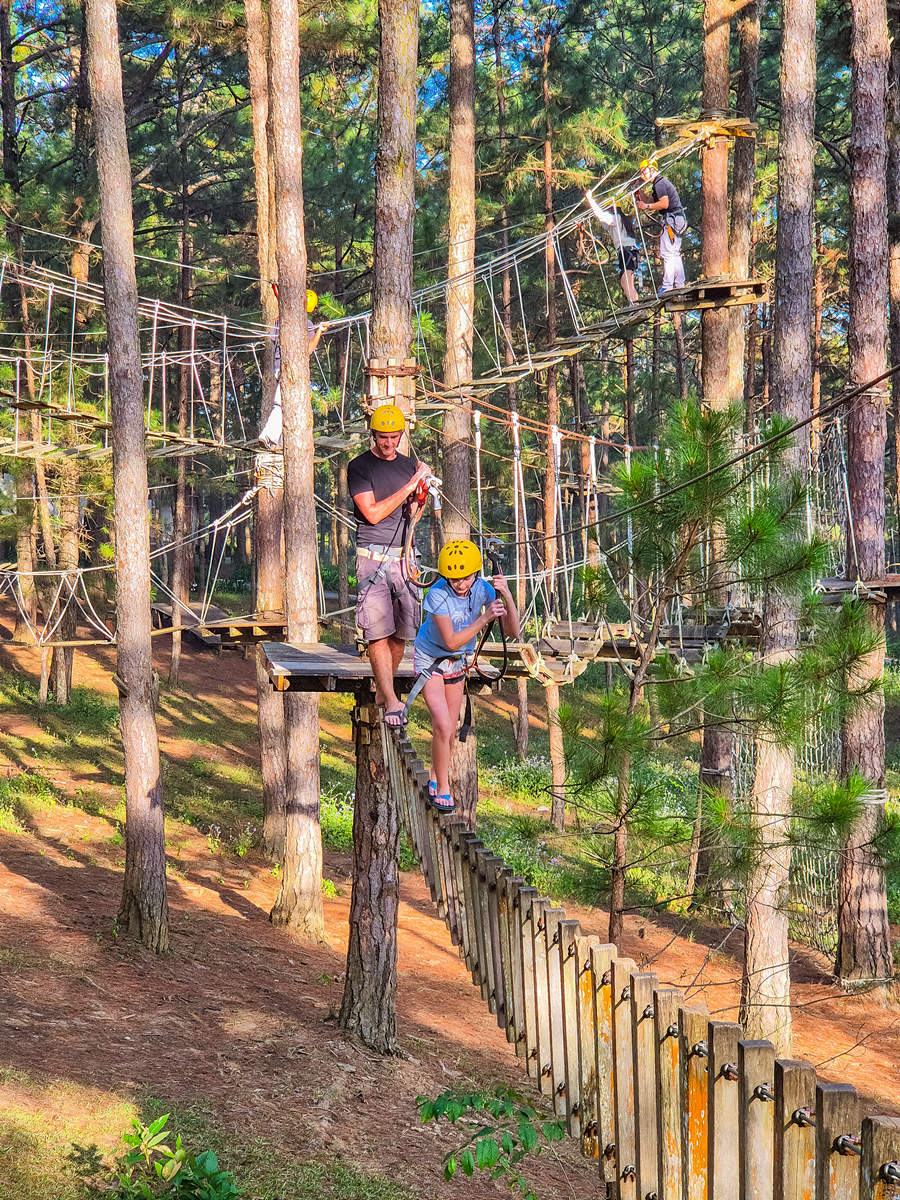 Auf dem See kannst du Tretboot fahren, es gibt einige süße Fotospots und eine Sammlung von Miniaturen berühmter Sehenswürdigkeiten aus aller Welt. Genau dort, wo sich die 30 Mini-Weltwunder befinden, gibt es einen Klettergarten, der sogar im Eintrittspreis inbegriffen ist. Du musst also bei Datanla Wasserfall kein extra Geld für Abenteuer ausgeben, wenn du einen Hochseilgarten hier auch ausprobieren kannst. Der Durchgang im Kletterpark dauert ca. eine Stunde und endet mit einer kurzen Zipline-Strecke.