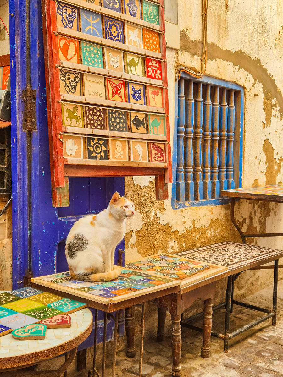 Die Altstadt von Essaouira (Medina) ist von einer beeindruckenden Stadtmauer umgeben und gilt als Herzstück der Stadt. Schon beim Betreten durch eines der Stadttore tauchst du in ein Labyrinth aus engen Gassen, kleinen Läden und bunten Märkten ein.