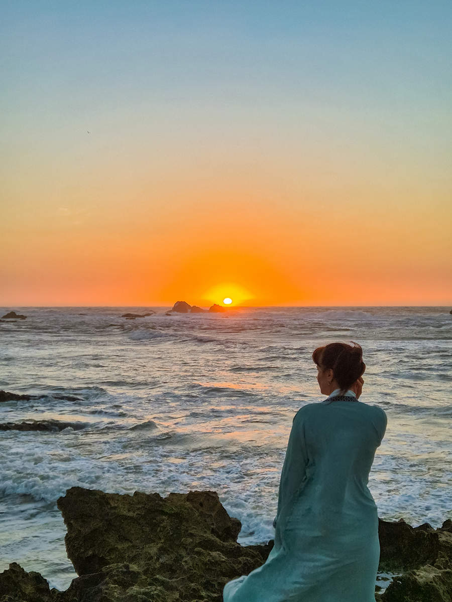 Essaouira ist berühmt für seine Sonnenuntergänge am Atlantik. Besonders schön sind sie am kleinen Sunset-Port zu erleben. Dieser befindet sich am Moulay Hassan-Platz gleich hinter der Mauer. Von hier aus hast du einen freien Blick aufs Meer und den Himmel, der sich in intensiven Orange- und Rottönen färbt.