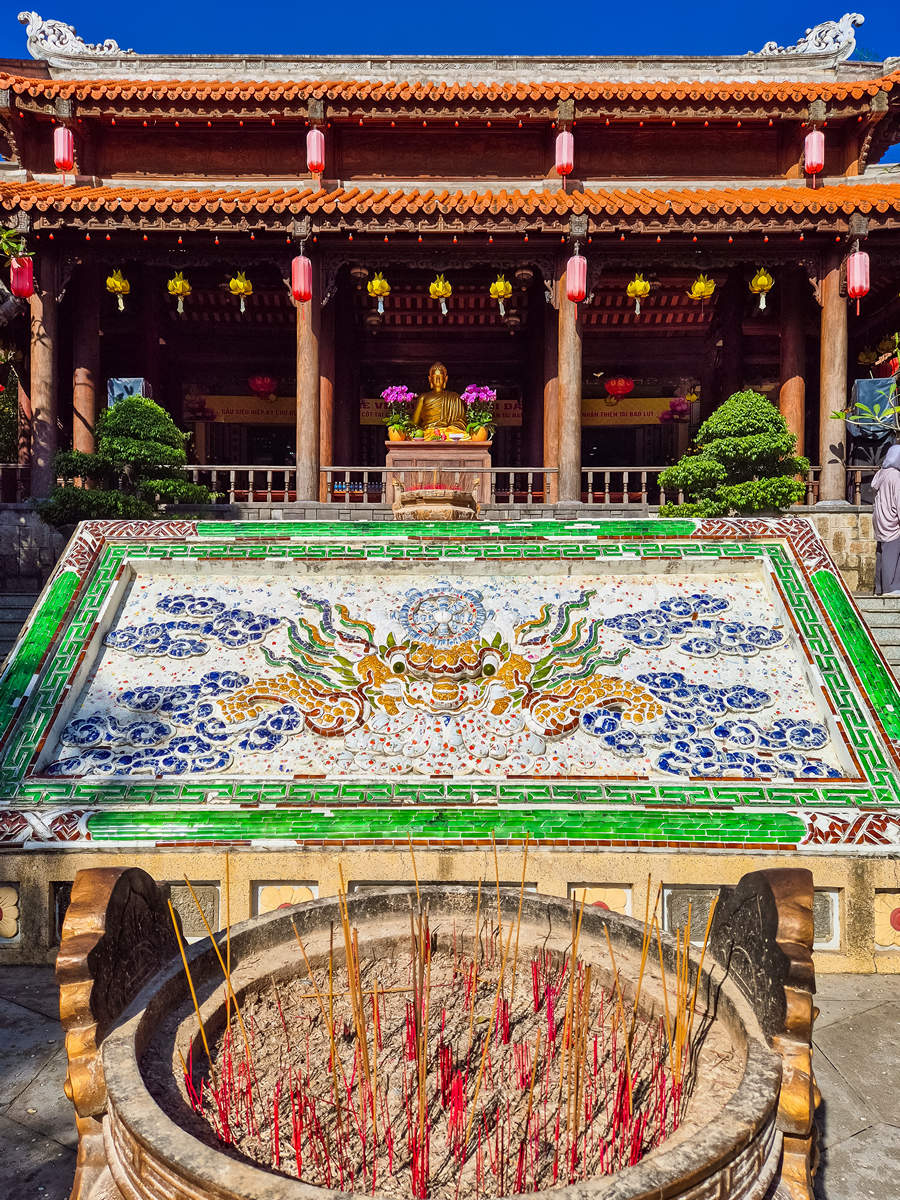 Die Long Son Pagode ist eine der bekanntesten Sehenswürdigkeiten in Nha Trang und ein wichtiger spiritueller Ort für Einheimische. Der Tempel liegt am Fuße eines Hügels. Er ist bekannt für die weiße Buddha-Statue, die oben auf der Anhöhe sitzt und über die Stadt blickt.