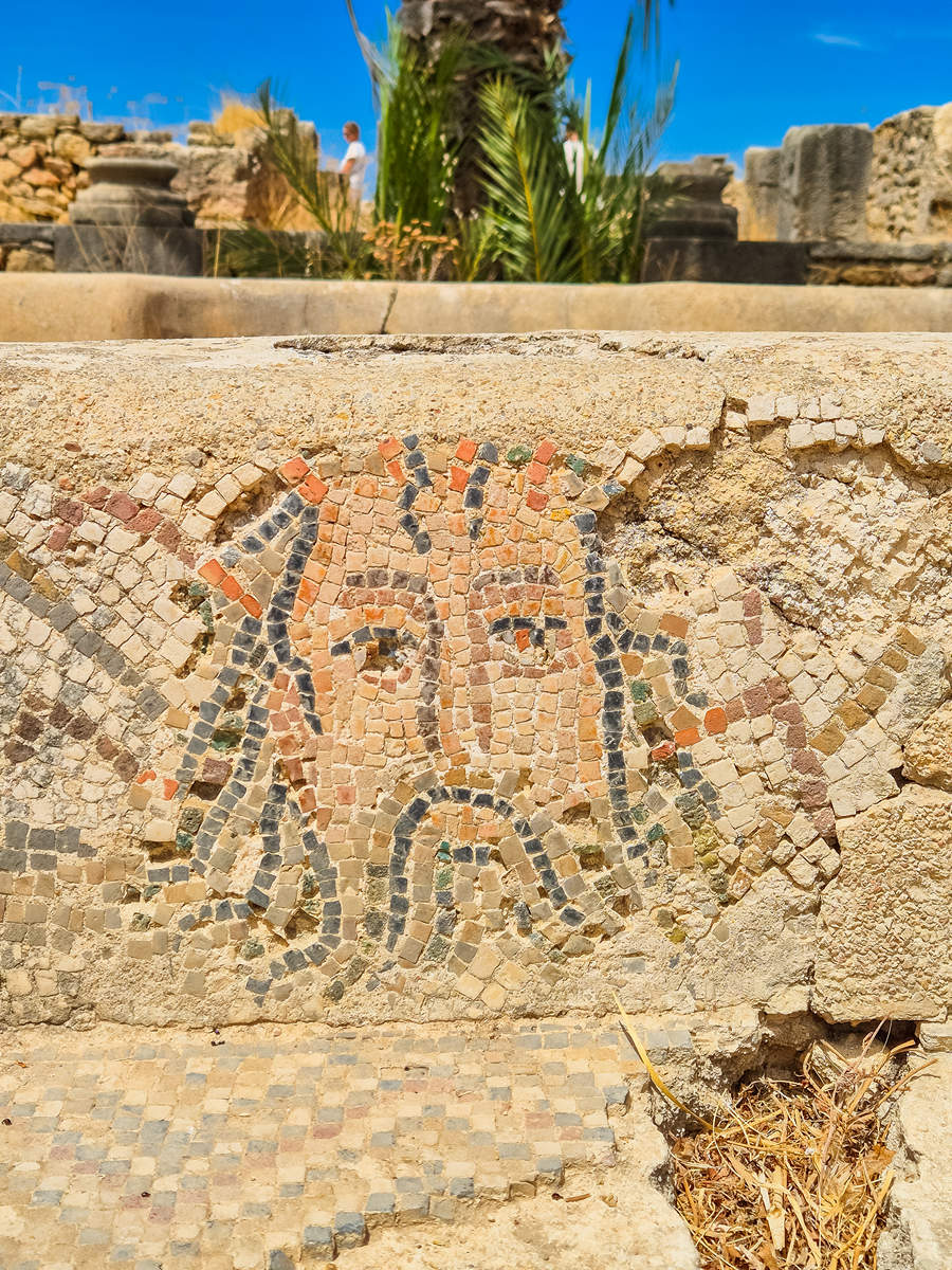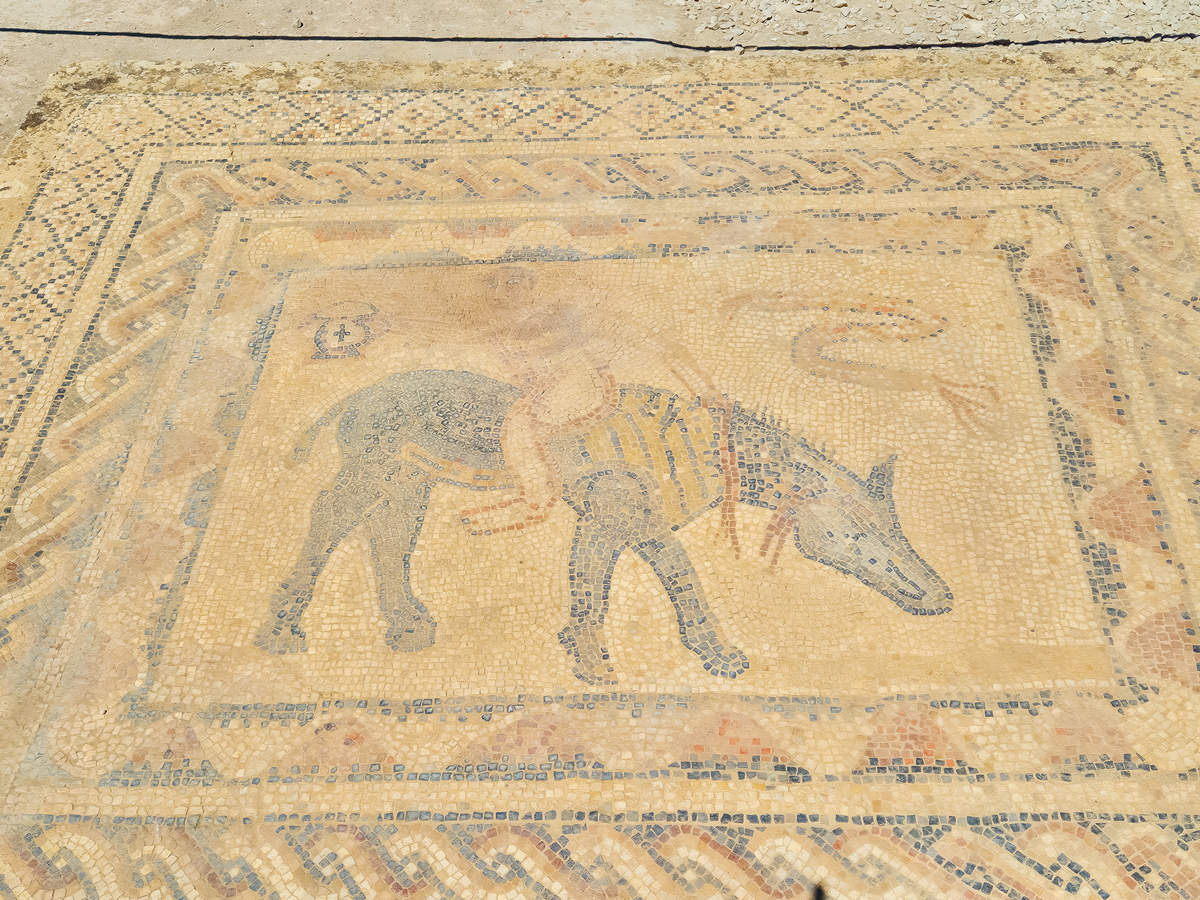 Das Highlight ist ein Mosaik mit einer Zirkusszene: ein Akrobat, der auf dem Rücken eines Esels rückwärts reitet.